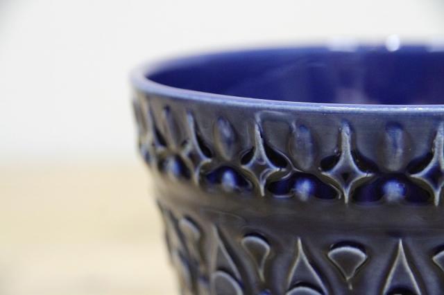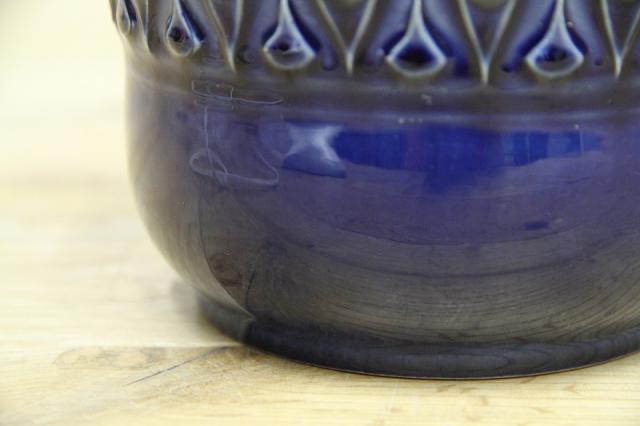 西ドイツU-Keramik社の陶器製フラワーポット。透き通るような青の色がとても美しいです。