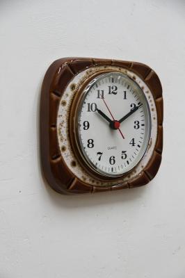 ドイツ製ヴィンテージ陶器製の掛時計。お菓子のような可愛い色とフォルムが印象的な一点です。