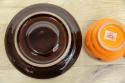 Winterling社1970年代製のヴィンテージ品です。オレンジ×ブラウンの色使いとフラワーモチーフがレトロ感を引き立たせるデザインです。