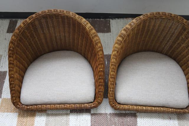 ラタン製のフロアチェアです。身体がすっぽり包み込まれるような丸みのあるデザイン。コンパクトながらも安定感抜群です。座面のクッションは取り外し可能なので、日頃のお手入れがラクチンですよ。