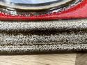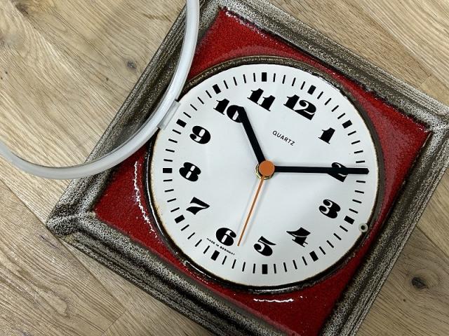 ドイツ製ヴィンテージの陶器製掛時計。古き佳き時代に建てられた建造物の外壁の一部のような、とても渋くて素敵な一点。鮮やかな赤の色が映えます。