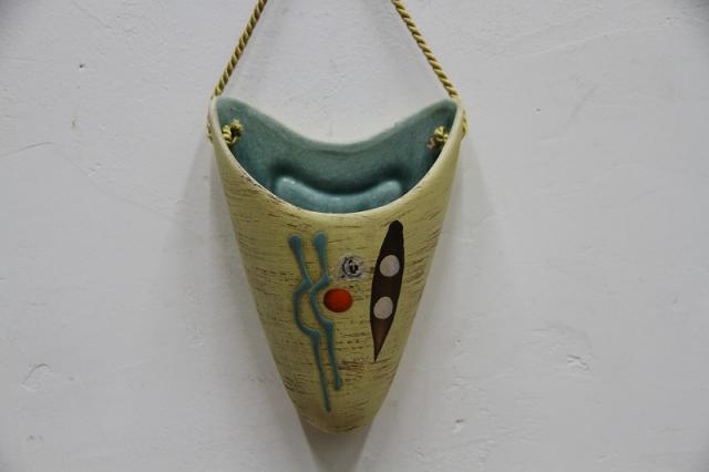 1960-70年代製ドイツのU-Keramik社のハンギングベースです。陶器製で、壁に付く面はしっかりと安定するつくりになっています。