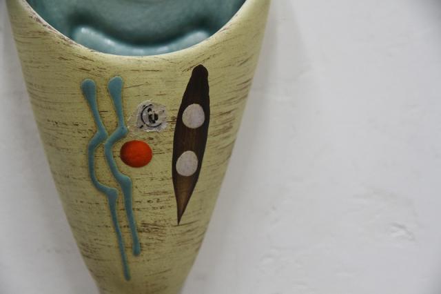 1960-70年代製ドイツのU-Keramik社のハンギングベースです。陶器製で、壁に付く面はしっかりと安定するつくりになっています。