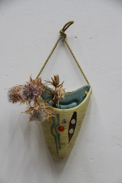 1960-70年代製ドイツのU-Keramik社のハンギングベースです。陶器製で、壁に付く面はしっかりと安定するつくりになっています。