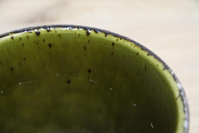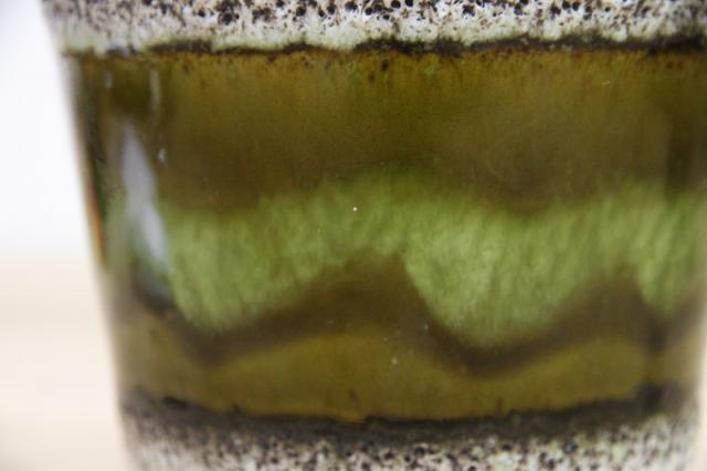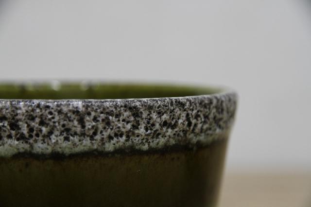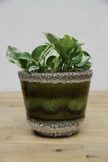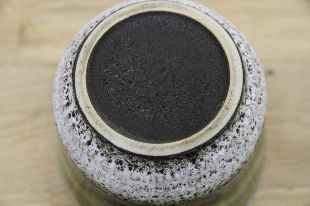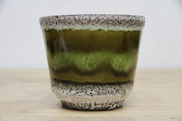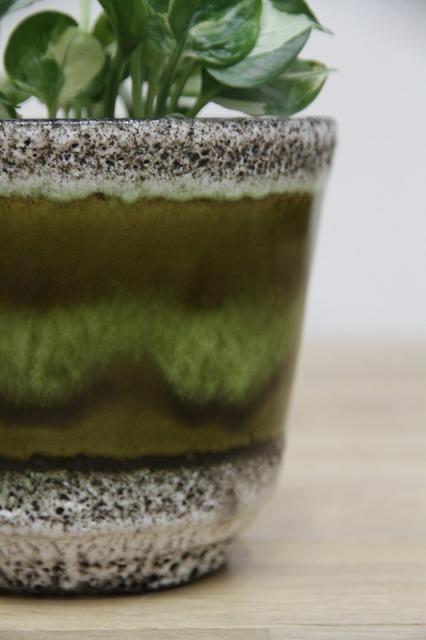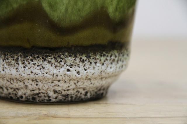 ドイツ製ヴィンテージ陶器製フラワーポット。流れるようなグリーンの色、軽石のような凹凸感ある泡のような釉薬の使い方が特徴的な一点です。