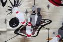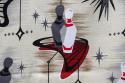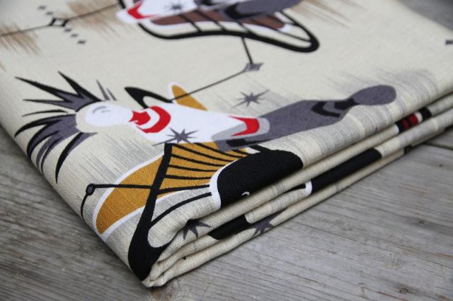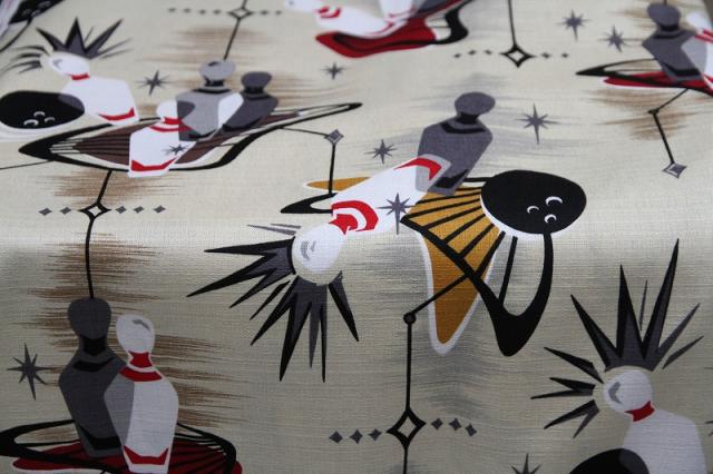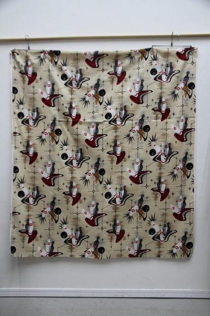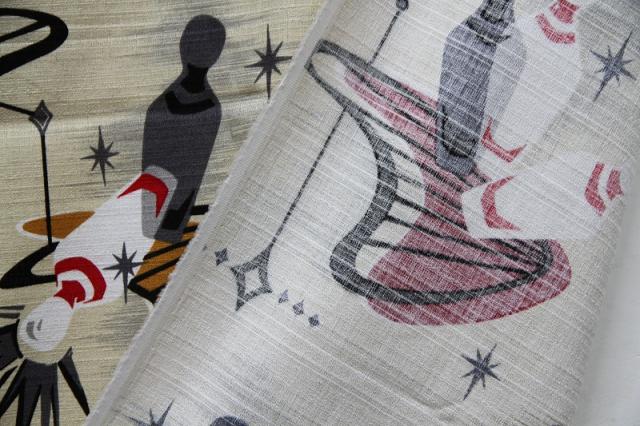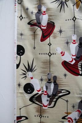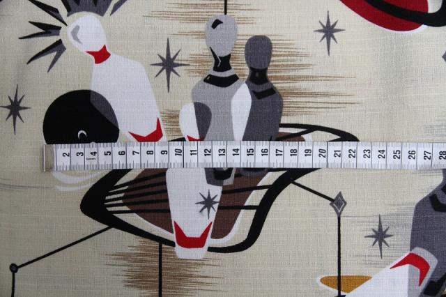 ボウリングプリントの生地はアメリカの老舗ファブリックメーカーRobert Kaufmanのもの。ミッドセンチュリーのアトミックパターンはやはり存在感がありカッコいいです。