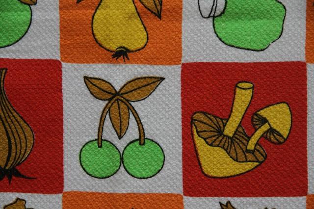 1970年代製のレトロなキッチンタオルです。キッチンを賑やかにしてくれるレトロプリントがとっても華やか。デットストック品です。