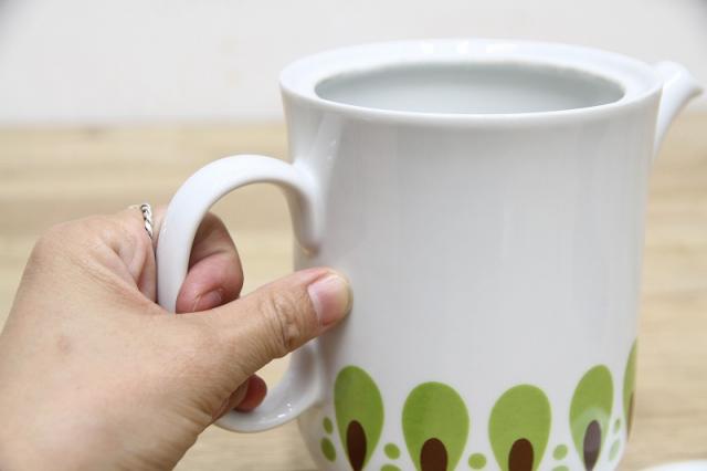 1735年創業イタリアの名窯 Richard Ginori(リチャードジノリ)のコーヒーポット。1960-70年代の頃のものです。美しい白磁にレトロプリントが引き立ちます。