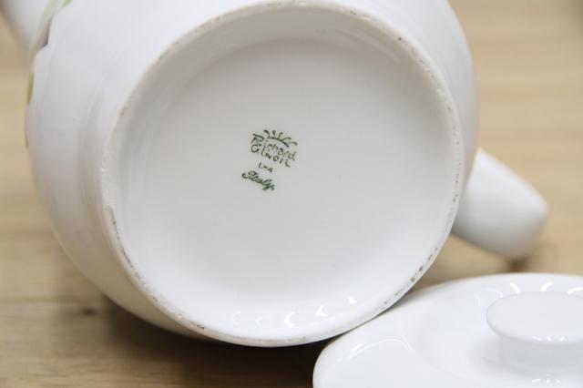 1735年創業イタリアの名窯 Richard Ginori(リチャードジノリ)のコーヒーポット。1960-70年代の頃のものです。美しい白磁にレトロプリントが引き立ちます。