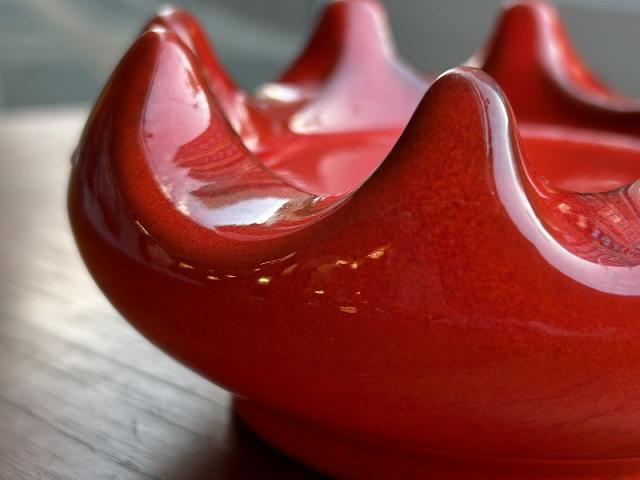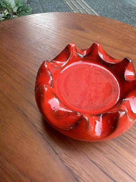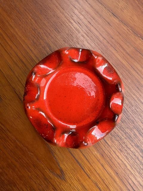 Siekaraというドイツの陶器メーカーのもののようです。1960-70年代製。赤の色使いが印象的で美しい灰皿です。