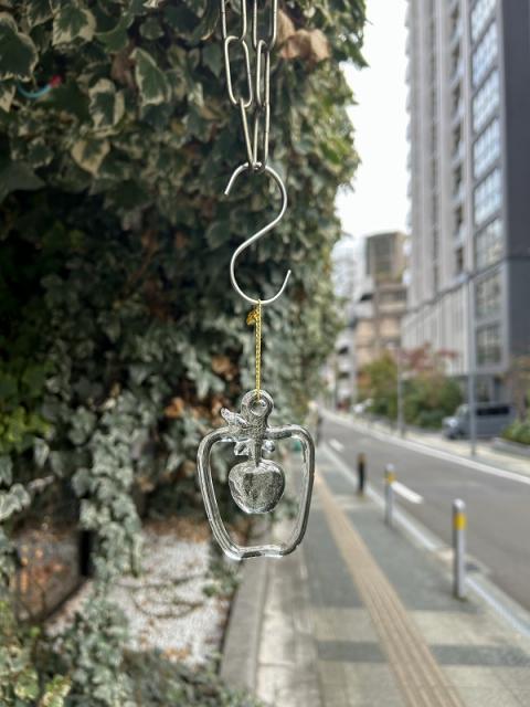 KOSTA BODA社製、りんごモチーフのガラスのサンキャッチャーが届きました。りんごのフレームと小さなサイズ感がとっても可愛いです。