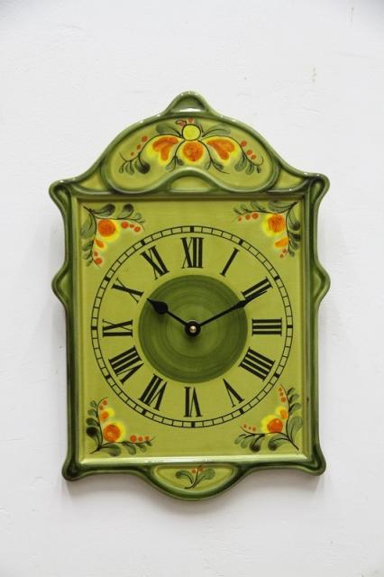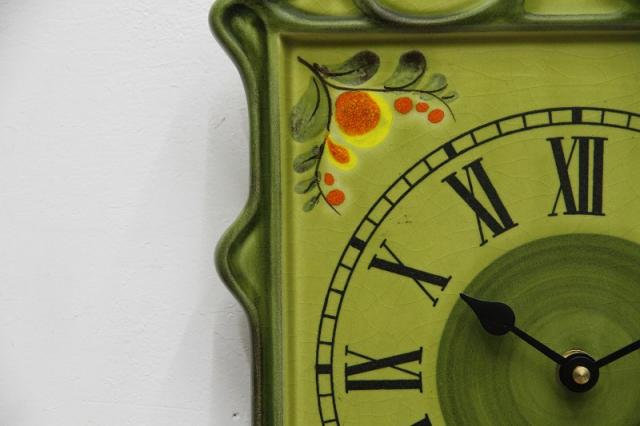 ドイツ製ヴィンテージの陶器製掛時計。ひとつの絵画のような、非常に印象的なデザインです。
