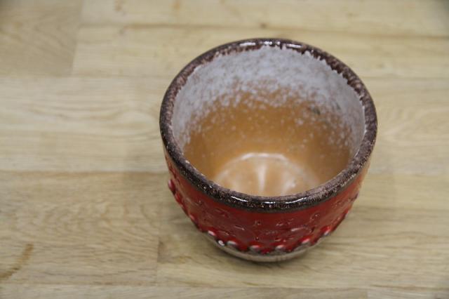 陶器製ヴィンテージのフラワーポット。小ぶりサイズが珍しいです。赤の色が植物との相性抜群です。