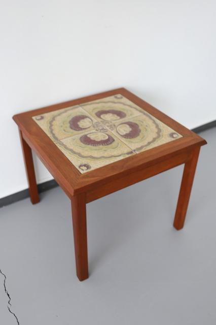 北欧デンマーク買付で見つけたタイルトップのサイドテーブルです。20cm角の大きなタイルが4枚集り大きなお花のように見えるデザインがとっても素敵です。