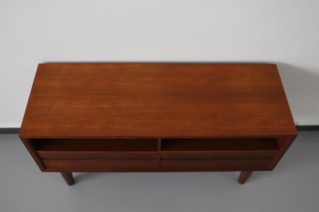 コンパクトさが際立つこちらのチェストは北欧デンマーク買付のもの。マンションや狭いスペースにもピッタリなサイズ感です。木目美しいチーク材の艶やかさが贅沢な雰囲気。引き出し収納や裏面も贅沢に材料が使われ、コンディションが良い一台です。