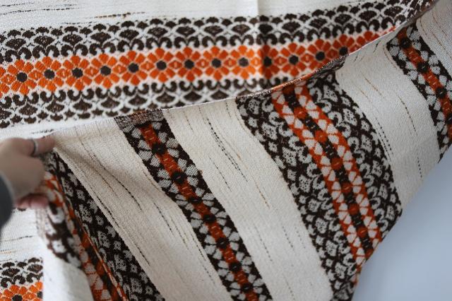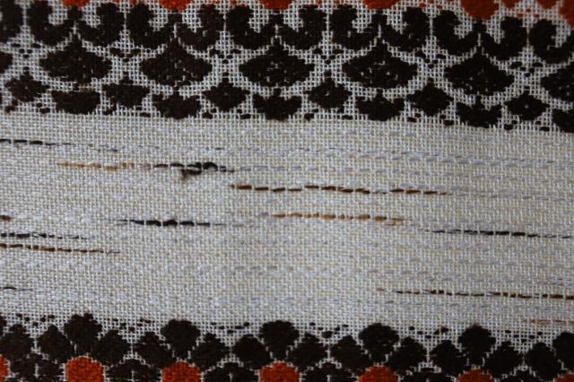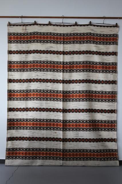 1970年代製のカーテンファブリックです。どこかノスタルジックな雰囲気漂うレトロさが引き立つデザイン。太さの違う糸で織られているので独特な凹凸感が出ることによる表情が大変見事なヴィンテージファブリック。グッドコンディションです。とても貴重な大判サイズ。壁に掛けたり、ベッドカバーやソファーカバーにしたり気軽にインテリアに取り入れてみてください。