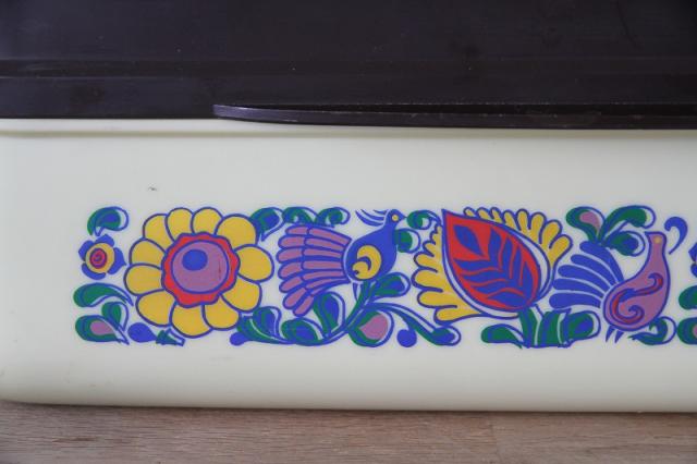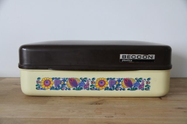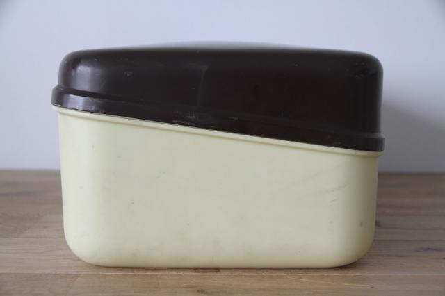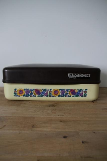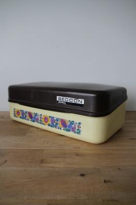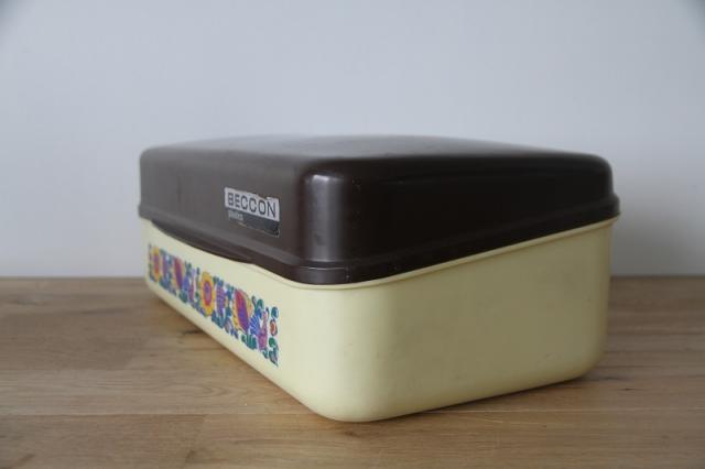 オランダ製のブレッドボックスです。レトロなフラワープリントとプラスチック素材感がとてもレトロ。たっぷりサイズな収納ボックスは使い道いろいろですね。