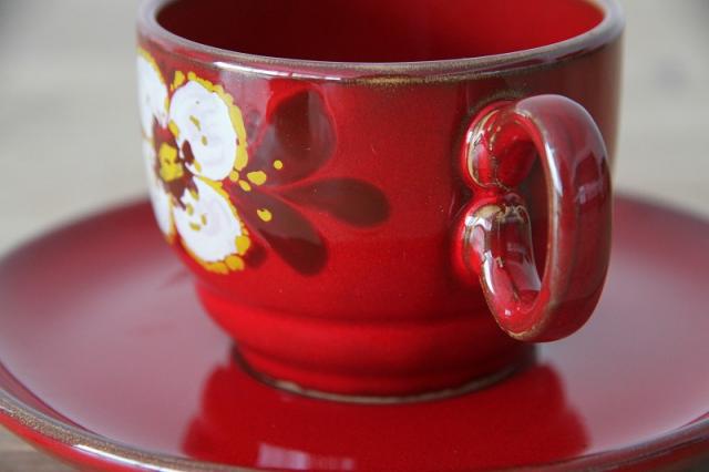 ドイツWINTERLING社のレトロなカップ&ソーサーです。ぽってり艶やかな釉薬使いがとても印象的。深く惹きこまれるな美しい赤の色は見事です。