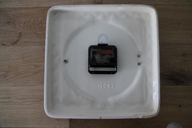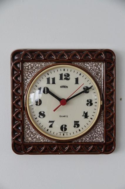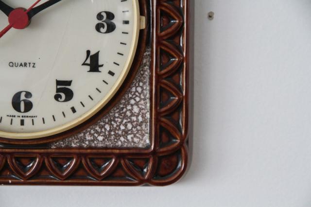 ドイツEMES社製の陶器製掛時計。1枚のタイルのような素敵なデザインです。大きくヒビが一本入っていますので詳細写真でお確かめください。