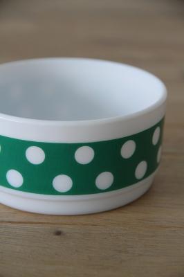 耐熱食器ミルクガラスで有名なフランスArcopal(アルコパル)のボウルです。レトロなドットプリントが可愛いです。