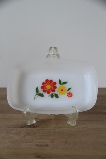 耐熱食器ミルクガラスで有名なフランスArcopal(アルコパル)の少し深さがあるお皿です。長方形型が良いです。フラワープリントがレトロで可愛い一点です。