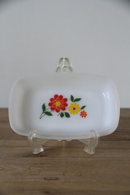 耐熱食器ミルクガラスで有名なフランスArcopal(アルコパル)の少し深さがあるお皿です。長方形型が良いです。フラワープリントがレトロで可愛い一点です。