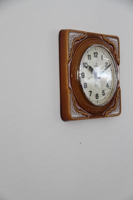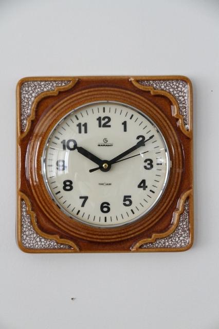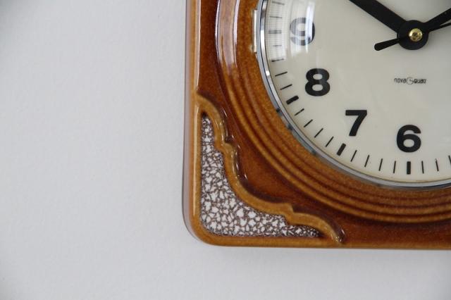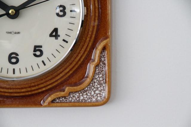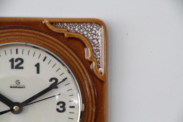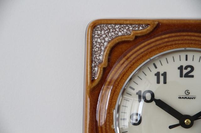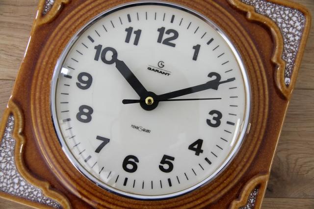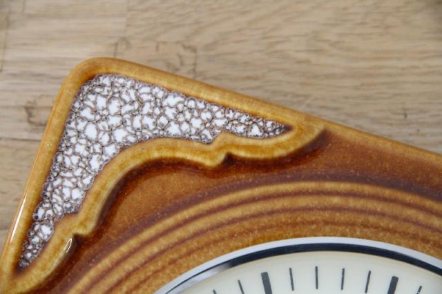 ドイツ製ヴィンテージの陶器製掛時計です。茶系でまとめられたデザインはどんなテイストのお部屋にもすんなり馴染んでくれますよ。