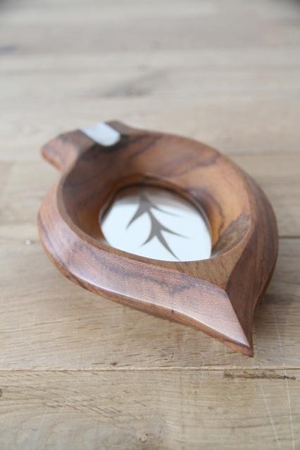葉っぱデザインのヴィンテージ木製灰皿です。