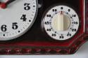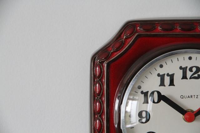ドイツ製ヴィンテージのこちらの陶器製掛時計は、キッチンタイマー付きのデザインです。