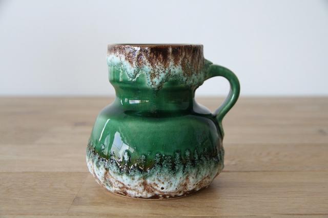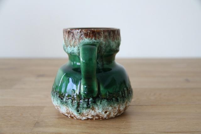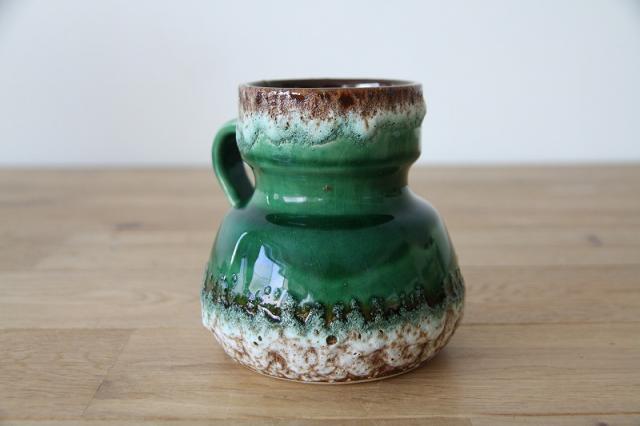 西ドイツにて製造されていた'Fat Lava'と呼ばれる陶磁器で、1848年創業と言われているJopeko社製のフラワーベース。軽石のように凹凸ある釉薬と艶感ある鮮やかな緑のバランスが素敵な一点です。