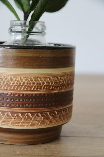 陶器製のフラワーポットはドイツ製ヴィンテージ。珍しいミニサイズですよ。