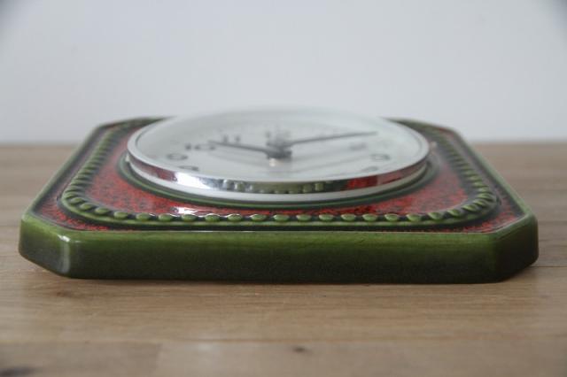 ドイツJUNGHASN社製の陶器製掛時計。レッド、グリーン、ブラックの色使いが渋くて惹かれる一点。グリーンピースのような飾りのデザインが可愛いですよ。