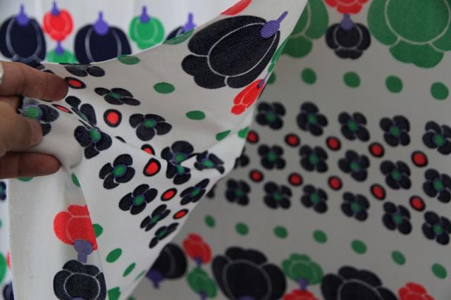 アメリカ買付便のヴィンテージファブリックです。さらさらとした質感で光沢ある生地です。とても貴重な大判サイズです。壁に掛けたり、ベッドカバーやソファーカバーにしたり気軽にインテリアに取り入れてみてください。