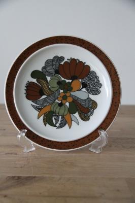 レトロなボタニカル柄がとても印象的なドイツRosenthal社製thomasの"Kiruna"シリーズのデザートプレート。Rorstrandで活躍したHertha Bengtsonによるデザインです。