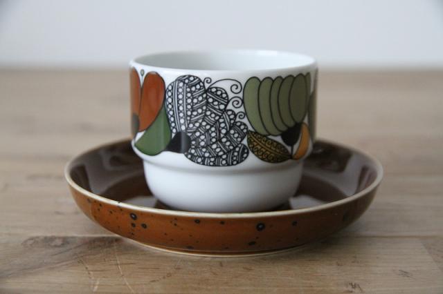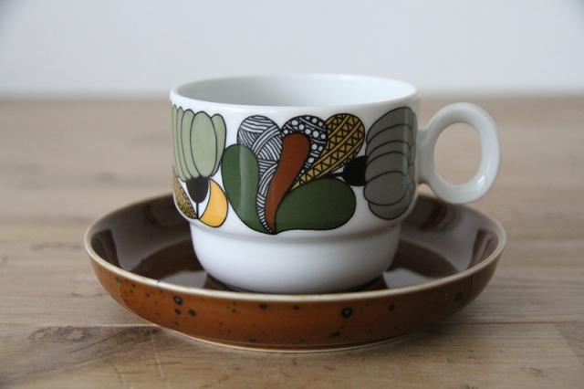 レトロなボタニカル柄がとても印象的なドイツRosenthal社製thomasの"Kiruna"シリーズのカップ&ソーサー。Rorstrandで活躍したHertha Bengtsonによるデザインです。