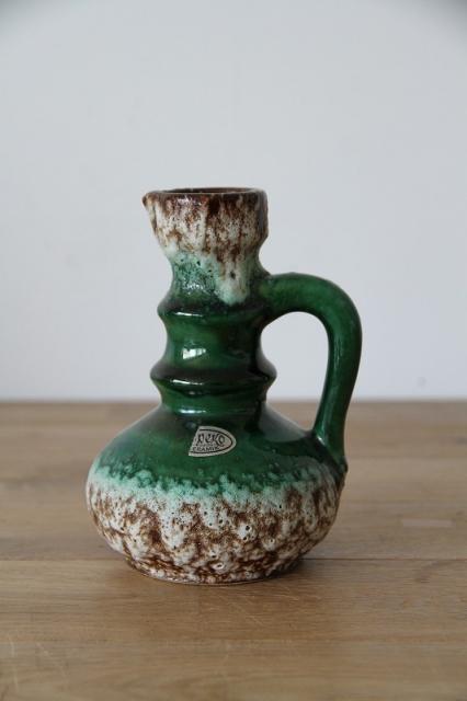 西ドイツにて製造されていた'Fat Lava'と呼ばれる陶磁器で、1848年創業と言われているJopeko社製のフラワーベース。軽石のように凹凸ある釉薬と艶感ある鮮やかな緑のバランスが素敵な一点です。