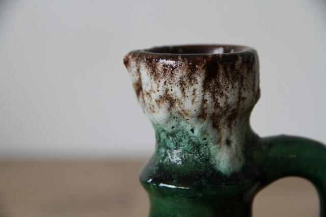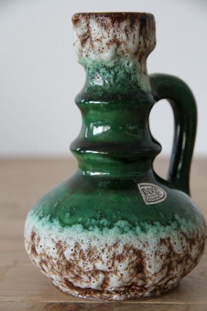 西ドイツにて製造されていた'Fat Lava'と呼ばれる陶磁器で、1848年創業と言われているJopeko社製のフラワーベース。軽石のように凹凸ある釉薬と艶感ある鮮やかな緑のバランスが素敵な一点です。