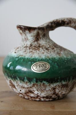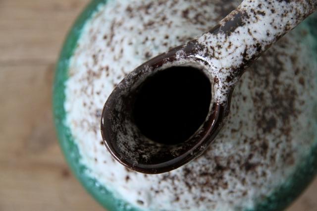 西ドイツにて製造されていた'Fat Lava'と呼ばれる陶磁器で、1848年創業と言われているJopeko社製のフラワーベースです。軽石のように凹凸ある釉薬と艶感ある鮮やかな緑の色のバランスが素敵な一点です。