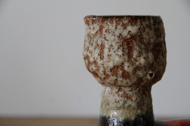 西ドイツにて製造されていた'Fat Lava'と呼ばれる陶磁器で、1848年創業と言われているJopeko社製のフラワーベース。軽石のように凹凸ある釉薬と艶感ある鮮やかなオレンジのバランスが素敵な一点です。