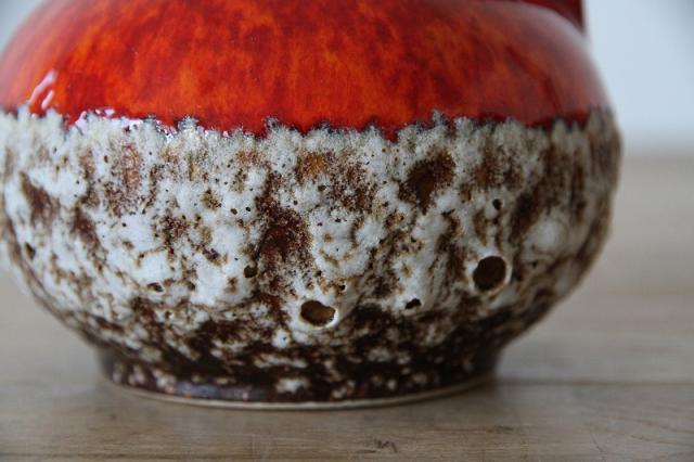 「Fat Lava」とは、1950~70年代に主に旧西ドイツで生産されていた陶磁器の一種。「肥えた溶岩」と直訳できるその意味のとおり、火山口から流れ出た溶岩を彷彿させる釉薬の色使いや仕上げ方が最大の魅力です。