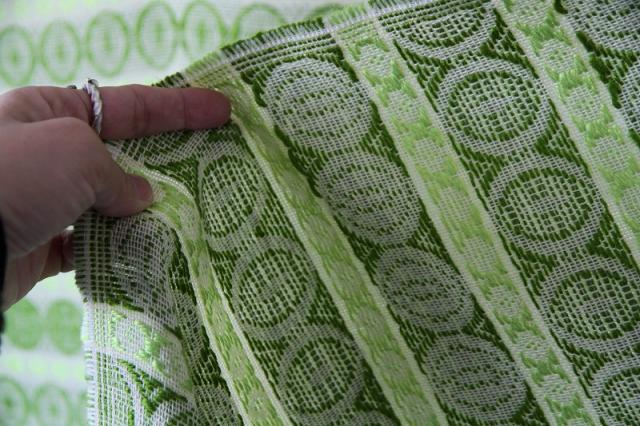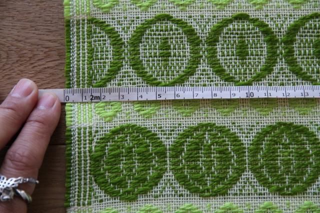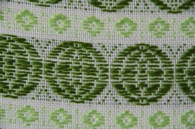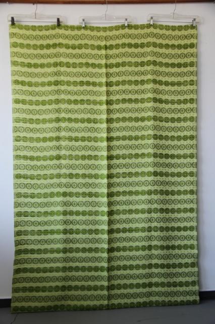 貴重なグリーンを基調とした色合いのファブリックは1970年代製のものです。太さの違う糸で織られているので独特な凹凸感が出ることによる表情が大変見事なヴィンテージファブリック。グッドコンディションです。とても貴重な大判サイズ。壁に掛けたり、カバーにしたり気軽にインテリアに取り入れてみてください。