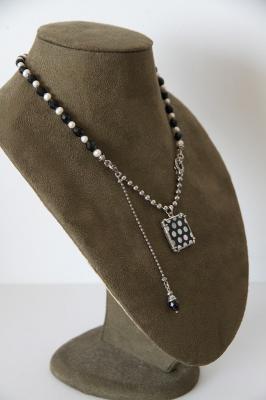 スターリングシルバー(シルバー925)に黒曜石のビーズ、パール、そして白蝶貝を象嵌したオニキスパーツを組み合わせたジュエリー。唯一無二の特別感を味わえるGEM KINGDOMのネックレスです。