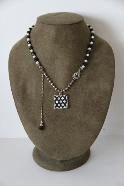 スターリングシルバー(シルバー925)に黒曜石のビーズ、パール、そして白蝶貝を象嵌したオニキスパーツを組み合わせたジュエリー。唯一無二の特別感を味わえるGEM KINGDOMのネックレスです。