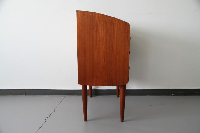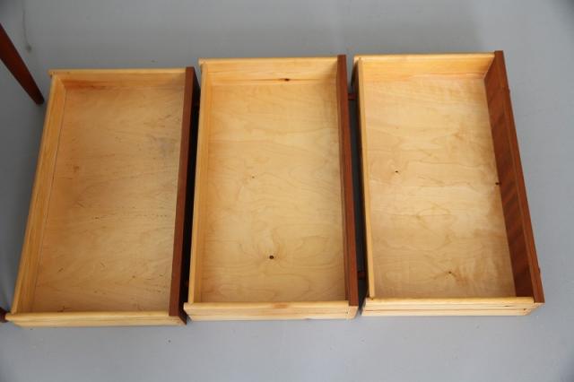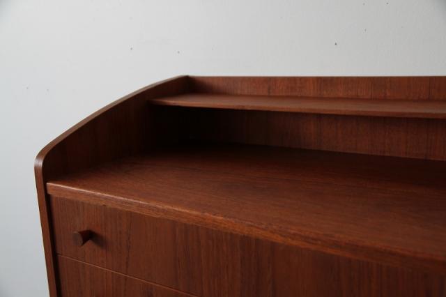 北欧デンマーク製のチーク材を使用した3段チェスト。3杯の引き出しを備え収納力もあり、上段も2段に分かれているつくりです。シンプルながらもデザイン性を兼ね備えた一台です。