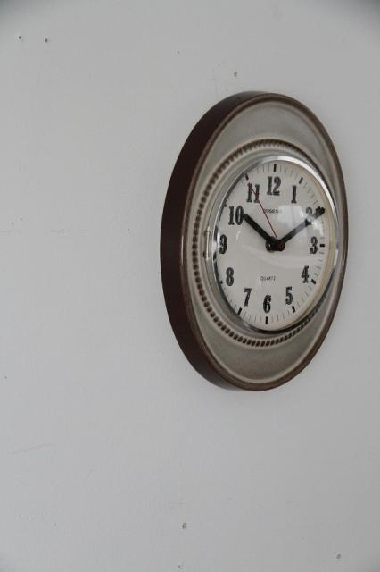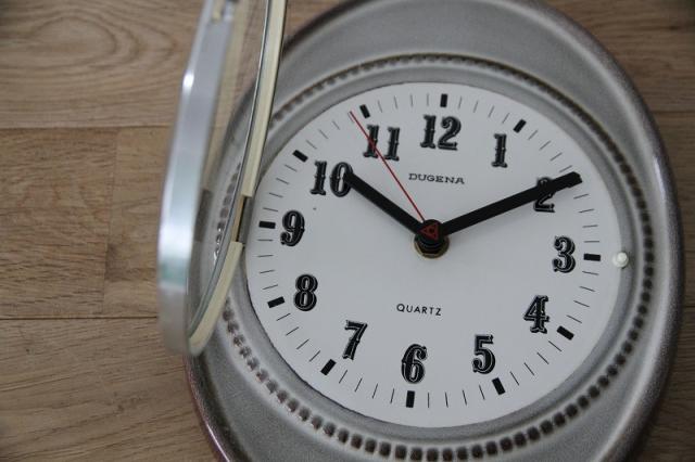ドイツDUGENA社製の陶器製掛時計。オーバル型のフォルムが目を惹きます。シンプルでありながらスタイリッシュな素敵な一点です。