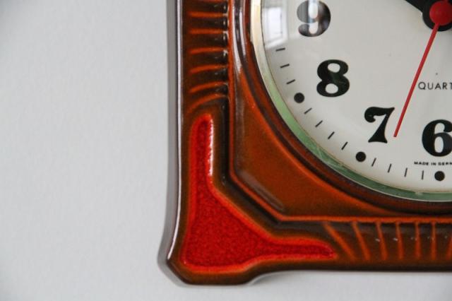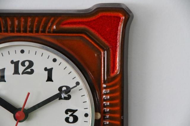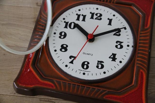 ドイツヴィンテージの陶器製掛時計です。お部屋を明るく照らしてくれるような鮮やかなオレンジ色が魅力的な一点です。