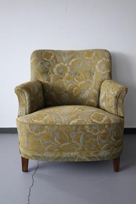 北欧デンマーク買付便の一人がけソファーです。クラシカルな雰囲気の花柄ファブリックが雰囲気を上げてくれます。コンパクトサイズでスペースをあまり使わずにセッティングできます。