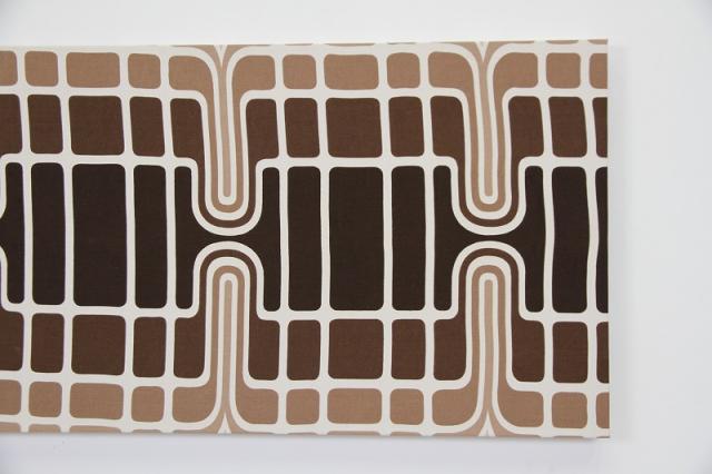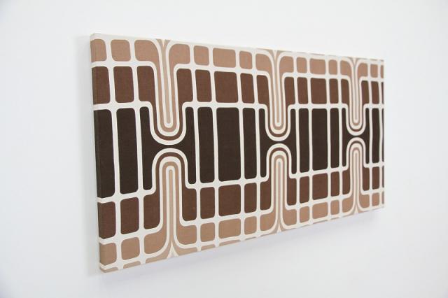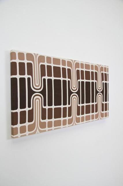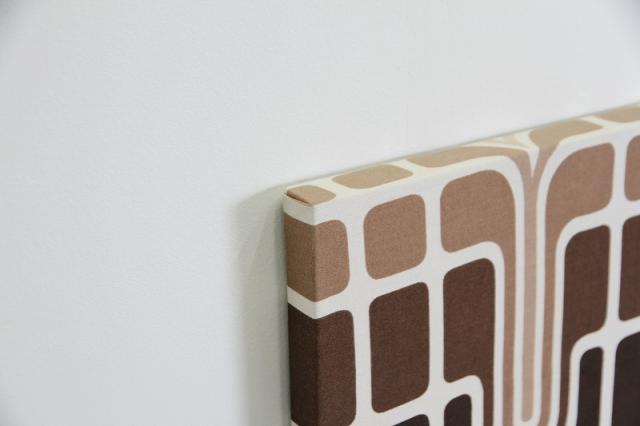 貴重な1960-70年代のヴィンテージファブリックを使用した、当店オリジナルのファブリックパネルです。見つかった状態のサイズを最大限に活かしたかったために、一枚一枚、フレームも特注品です。ミッドセンチュリーの時代のデザインアートが素敵なファブリックを木製パネルに貼ったウォールアート。