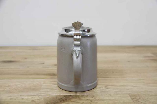 ヨーロッパでペストが大流行した際に生まれたといわれている蓋付きマグ。ハエがペスト菌を媒介するという説があり、ビールを飲んでいる最中にハエが入らないようにという理由から作られたそうです。蓋や親指で開け閉めできるような形状になっています。