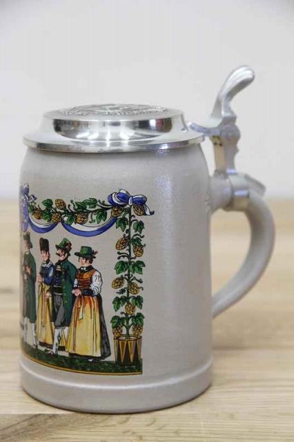 Münchenミュンヘンの老舗醸造所アウグスティナー-ブロイの蓋付き陶器製のビアマグです。バイエルン州の州都ミュンヘンと言えば、世界最大規模のビールの祭典、オクトーバーフェストが行われることでも有名な街ですね。初回はバイエルン王子ルードヴィヒ1世と王女テレーゼの結婚のお祝いとして開催されたのが始まりだったそうですよ。